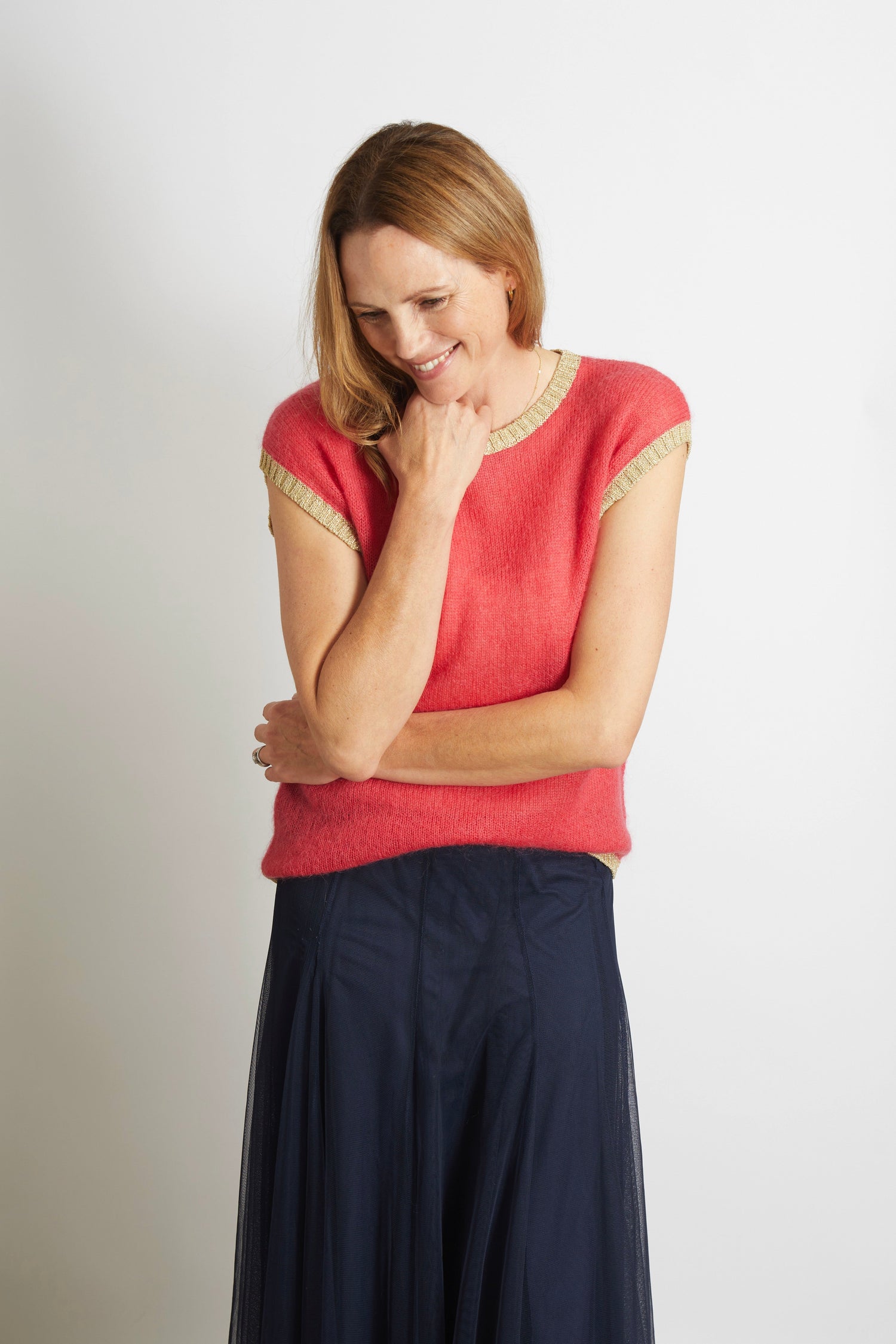 Rosie Knitted Tank Top with Gold Sparkle Lurex Trim - Cerise Pink